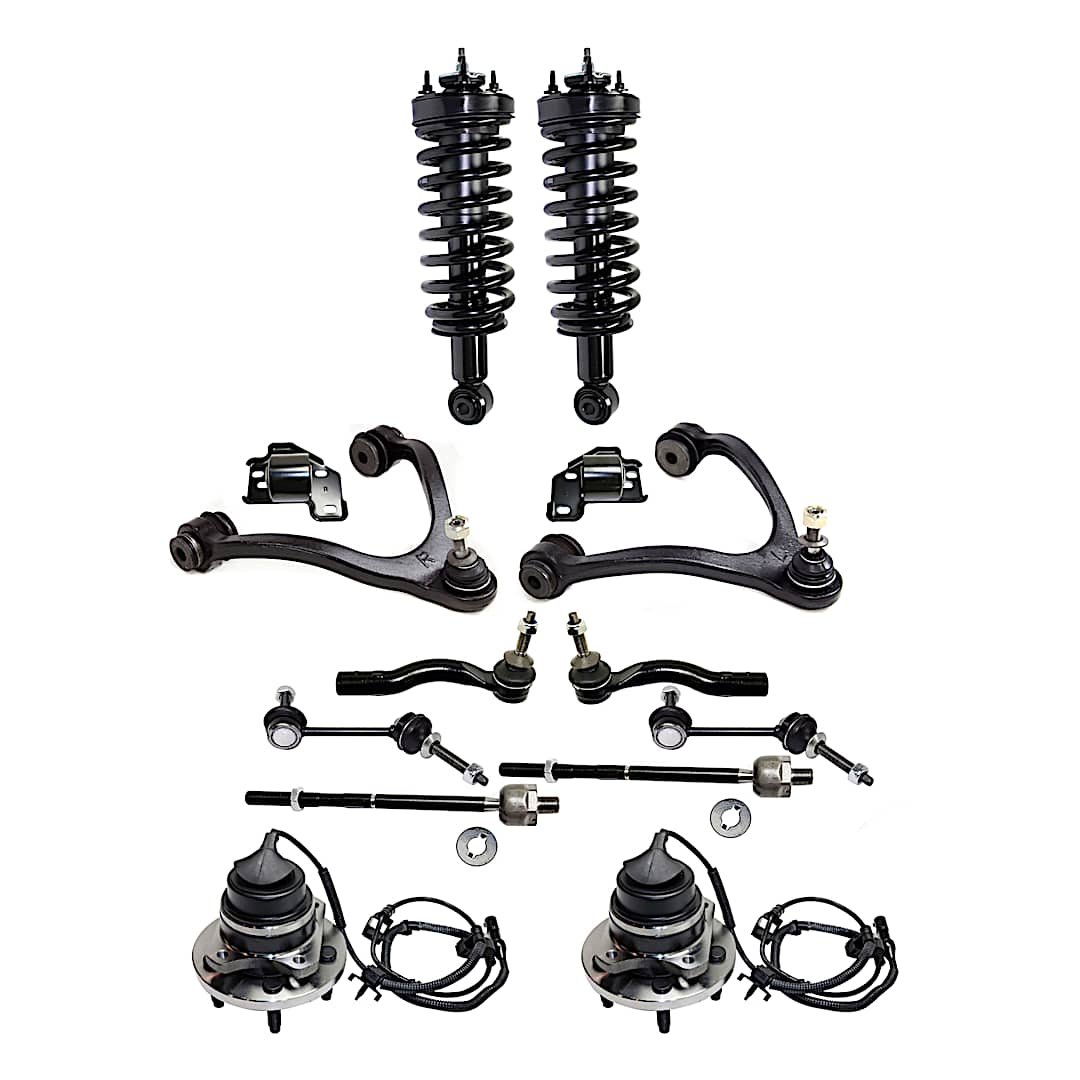 (2) Control Arm ,(2) Control Arm Bushing ,(2) Loaded Strut ,(2) Sway Bar Link ,(4) Tie Rod End ,and (2) Wheel Hub |