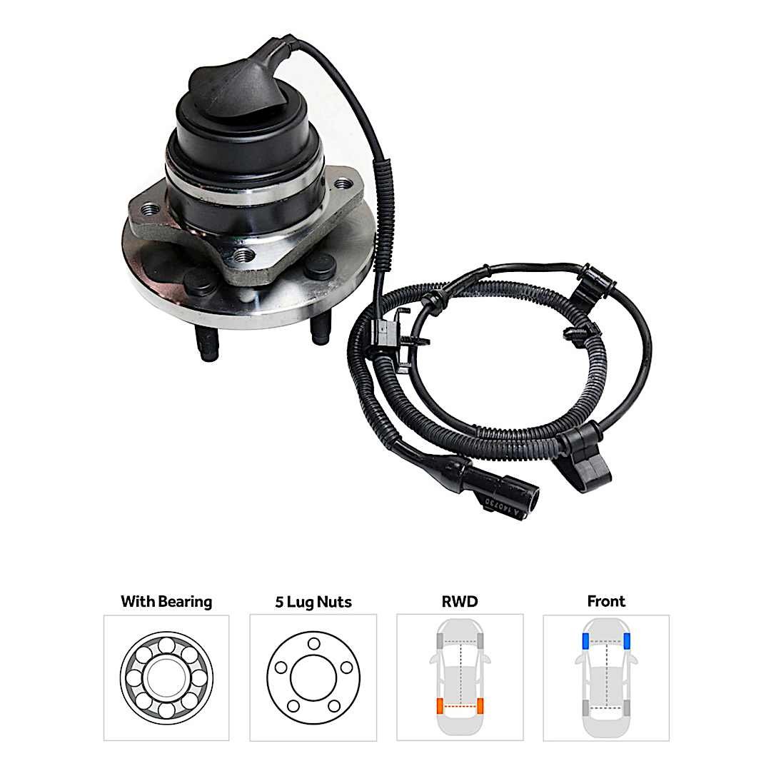 TrueDrive 14-Piece Kit Front, Driver and Passenger Side, Upper Control Arms with Control Arm Bushings, Loaded Struts, Sway Bar Links, Tie Rod Ends, and Wheel Hubs, Sedan