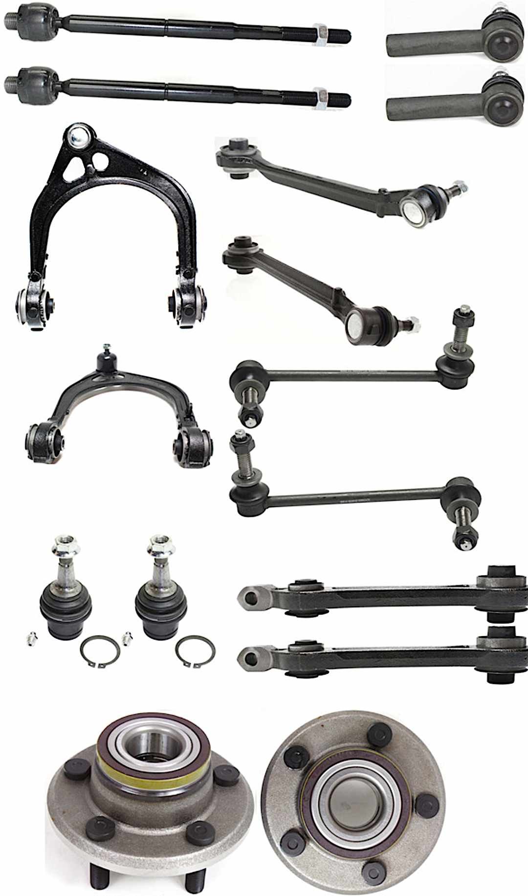 (2) Ball Joint ,(2) Sway Bar Link ,(4) Tie Rod End ,(6) Control Arm ,and (2) Wheel Hub |