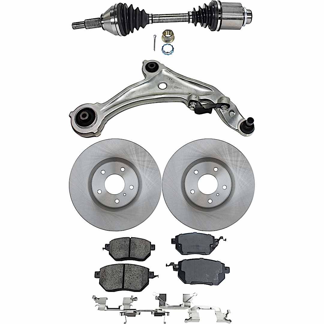 TrueDrive 5-Piece Kit Front, Passenger Side, Lower Control Arm with Axle Assembly, Brake Discs, and Brake Pad Set, AWD
