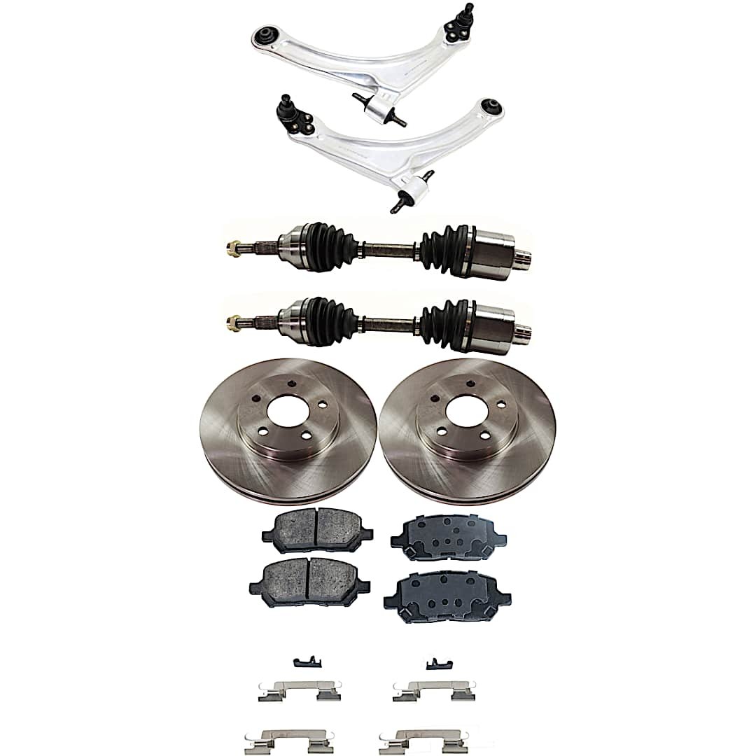 TrueDrive 7-Piece Kit Front, Driver and Passenger Side, Lower Control Arm, FWD, Automatic Transmission, 5 Lug Wheels, includes Axle Assembly, Brake Discs, and Brake Pad Set