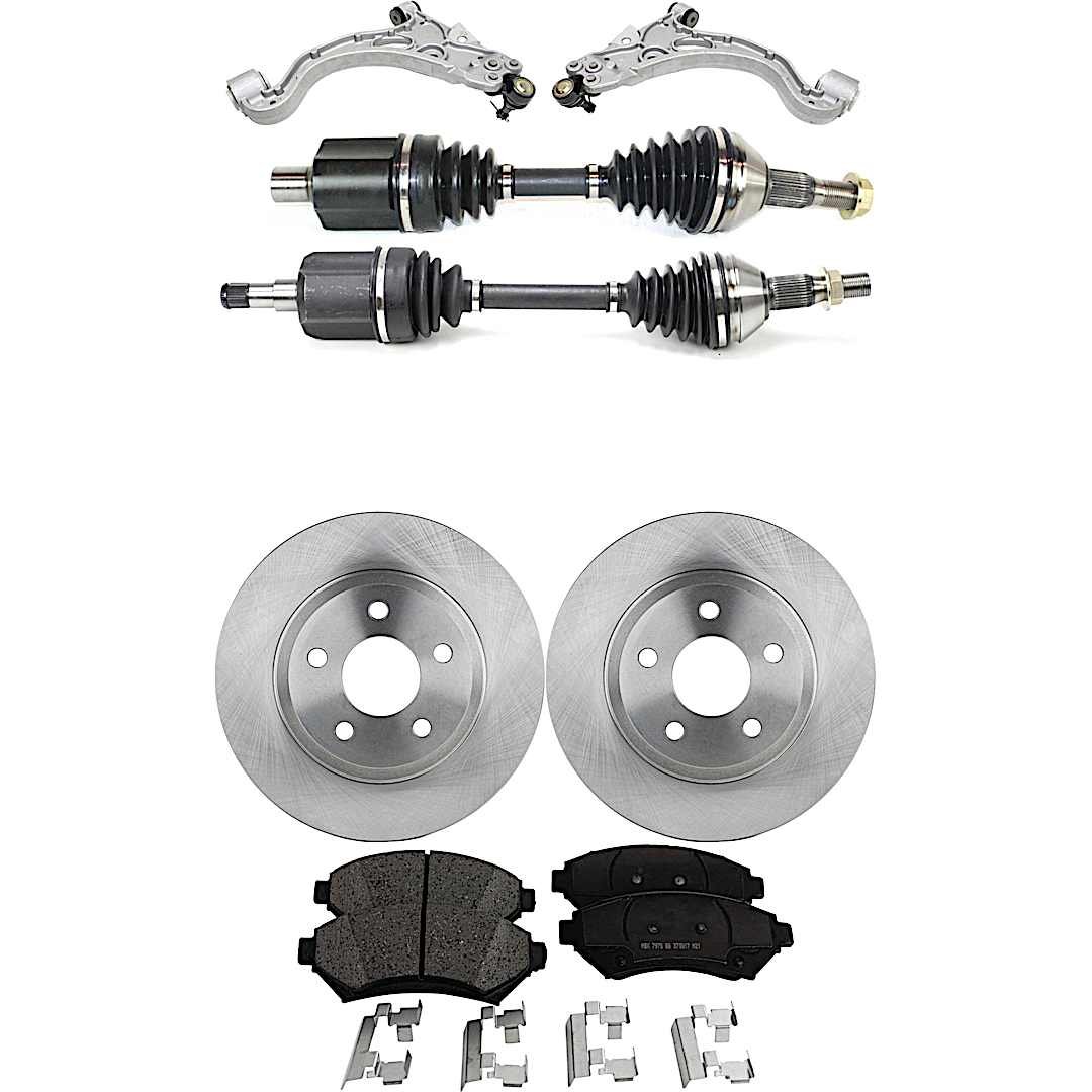 TrueDrive 7-Piece Kit Front, Driver and Passenger Side, Lower Control Arm, FWD, includes Axle Assembly, Brake Discs, and Brake Pad Set