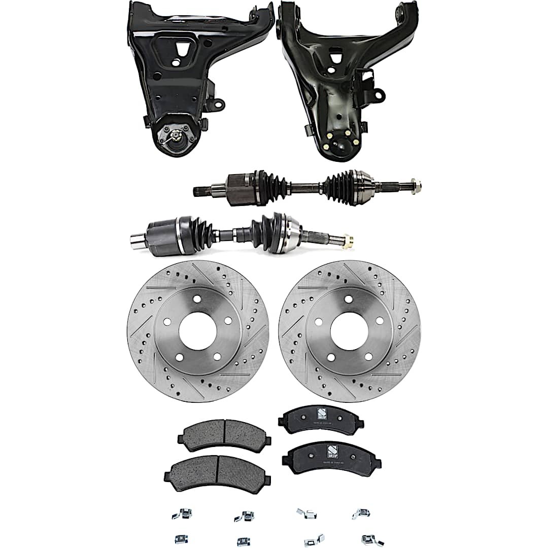 TrueDrive 7-Piece Kit Front, Driver and Passenger Side, Lower Control Arm, Includes (2) Axle Assembly, (2) Brake Disc, (1) Brake Pad Set, and (2) Control Arm