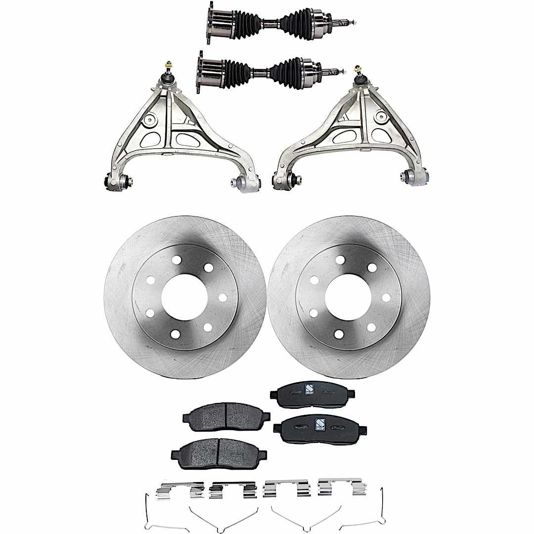 TrueDrive 7-Piece Kit Front, Driver and Passenger Side, Lower Control Arm with Axle Assemblies, Brake Discs, and Brake Pad Set