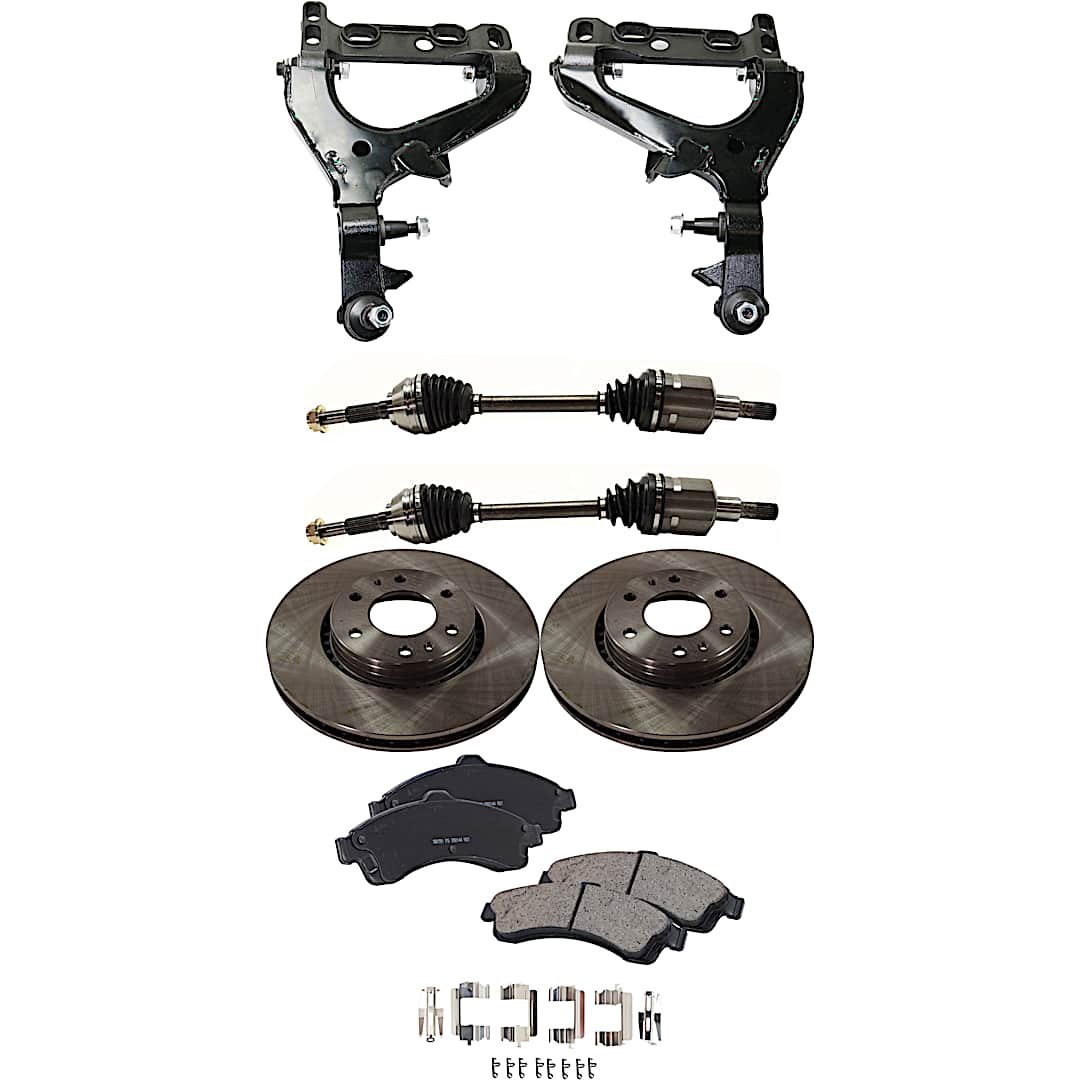 TrueDrive 7-Piece Kit Front, Driver and Passenger Side, Lower Control Arm with Axle Assemblies, Brake Discs, and Brake Pad Set