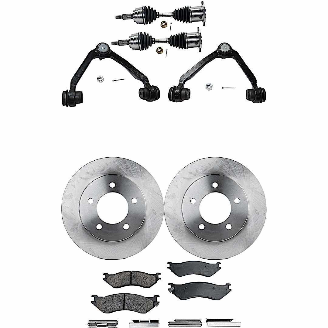 (1) Brake Pad Set ,(2) Axle Assembly ,(2) Brake Disc ,and (2) Control Arm |