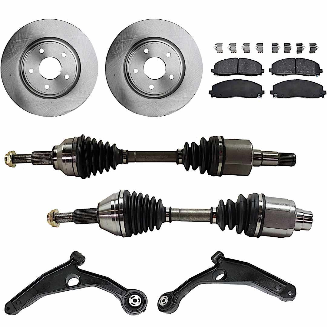 TrueDrive 8-Piece Kit Front, Driver and Passenger Side Axle Assembly with Brake Discs, Brake Pad Set, and Control Arms