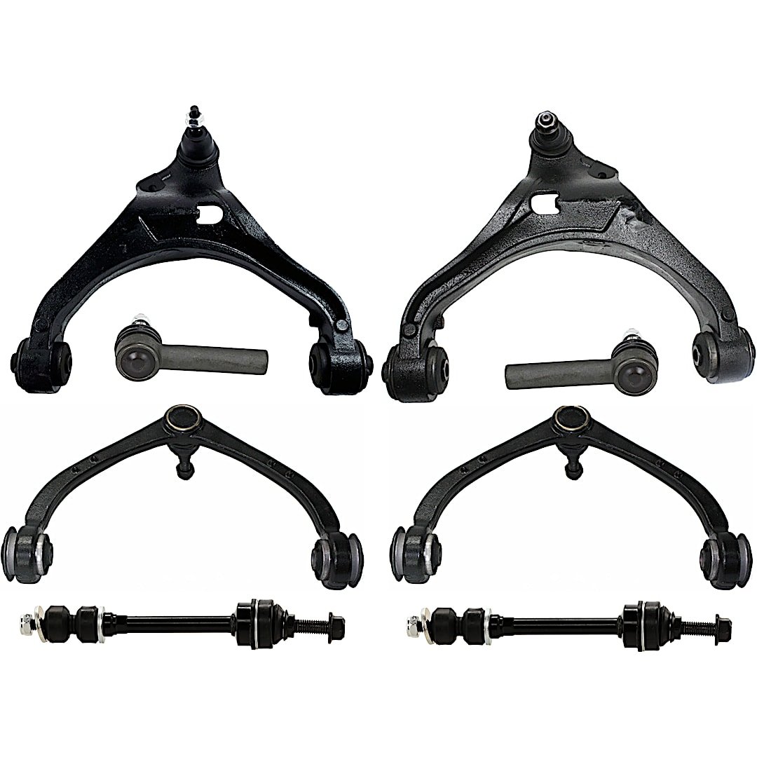 TrueDrive 8-Piece Kit Front, Driver and Passenger Side, Upper and Lower Control Arm, includes (4) Control Arm, (2) Sway Bar Link, and (2) Tie Rod End