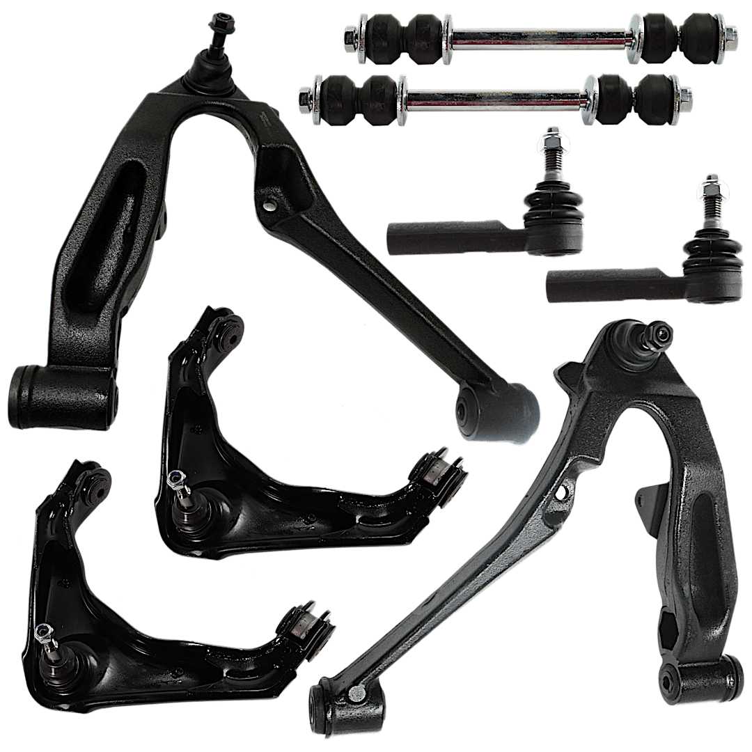 TrueDrive 8-Piece Kit Front, Driver and Passenger Side, Upper and Lower Control Arm, includes (4) Control Arm, (2) Sway Bar Link, and (2) Tie Rod End