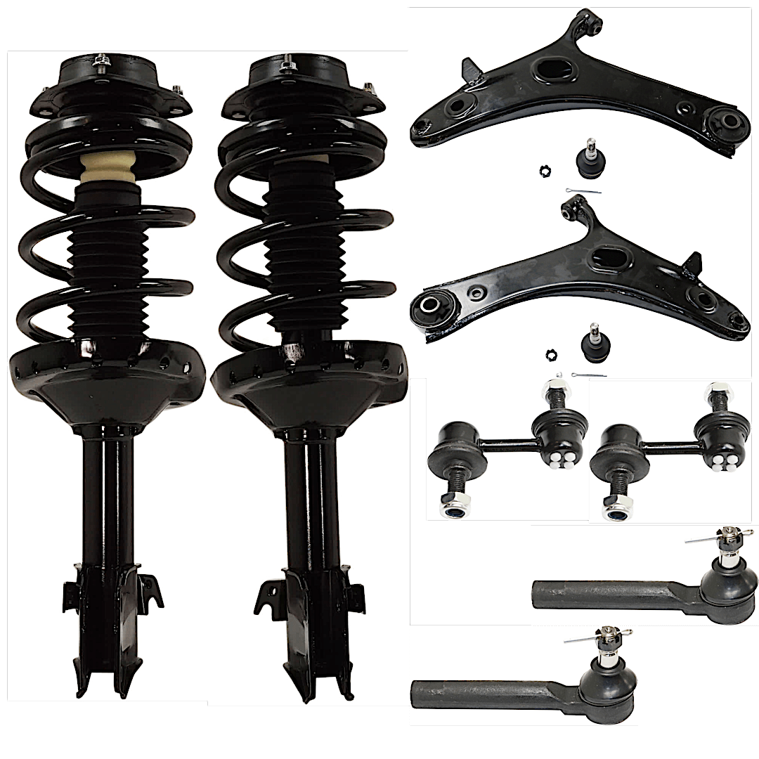 (2) Control Arm ,(2) Fully Loaded Strut ,(2) Sway Bar Link ,and (2) Tie Rod End |