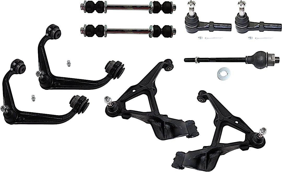 TrueDrive 9-Piece Kit Front, Driver and Passenger Side, Upper and Lower Control Arm, includes (4) Control Arm, (2) Sway Bar Link, and (3) Tie Rod End