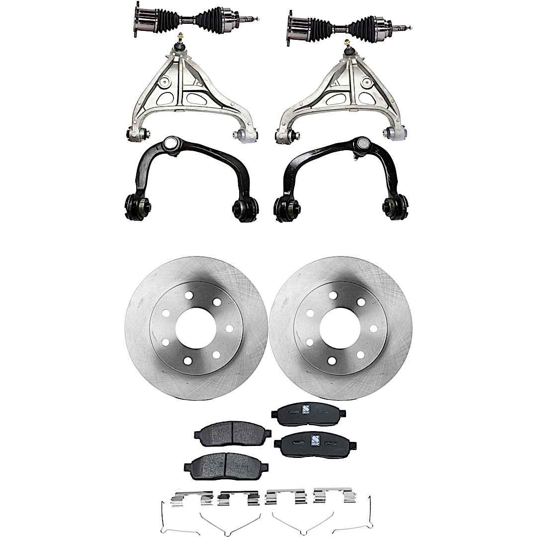 TrueDrive 9-Piece Kit Front, Driver and Passenger Side, Upper and Lower Control Arm with Axle Assemblies, Brake Discs, and Brake Pad Set, 7 Lugs