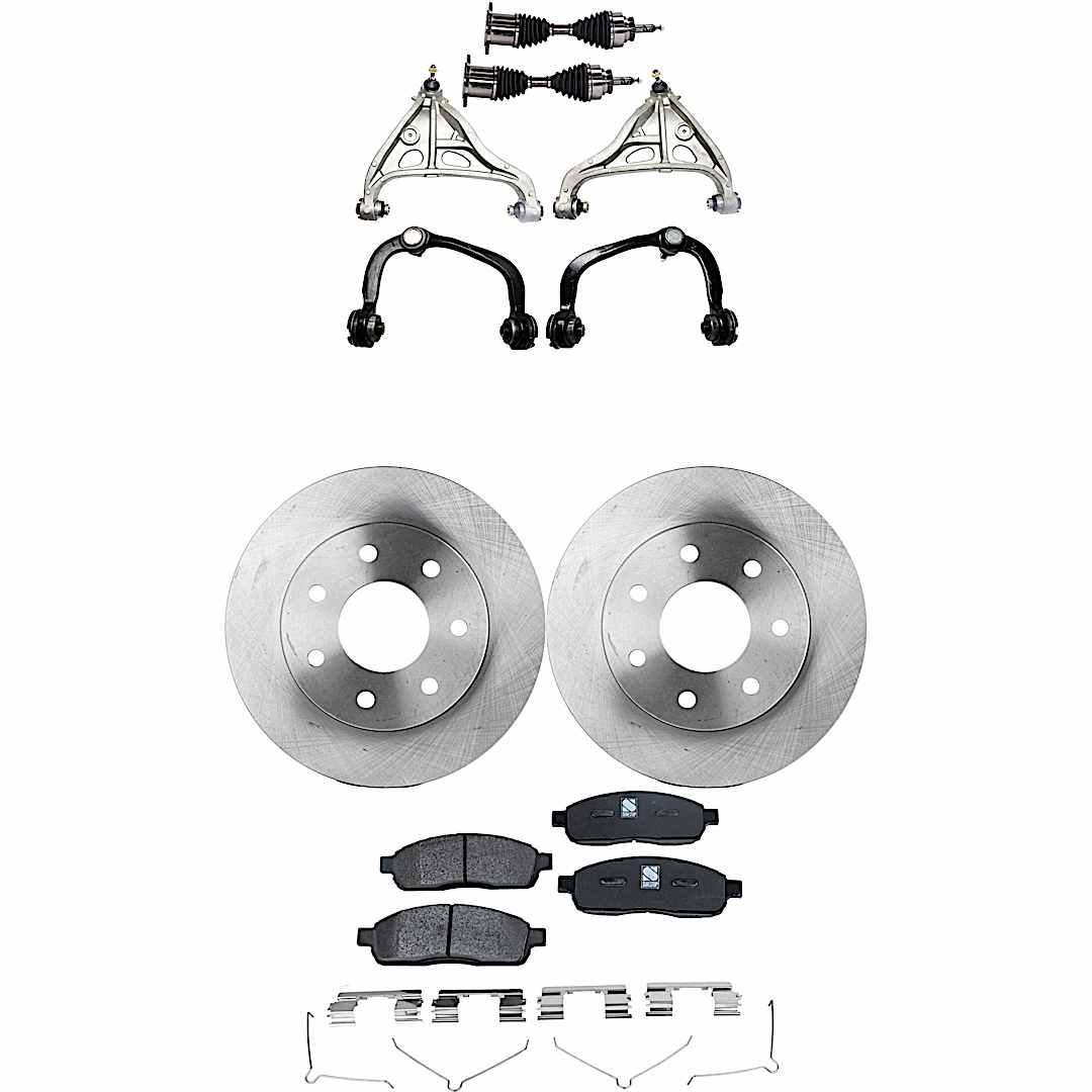 TrueDrive 9-Piece Kit Front, Driver and Passenger Side, Upper and Lower Control Arm with Axle Assemblies, Brake Discs, and Brake Pad Set, 7 Lugs