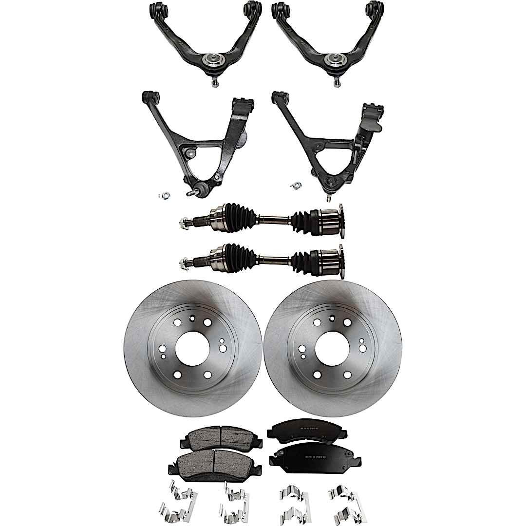 TrueDrive 9-Piece Kit Front, Driver and Passenger Side, Upper and Lower Control Arm with Axle Assemblies, Brake Discs, and Brake Pad Set, All Wheel Drive, With Front Torsion Bar Spring