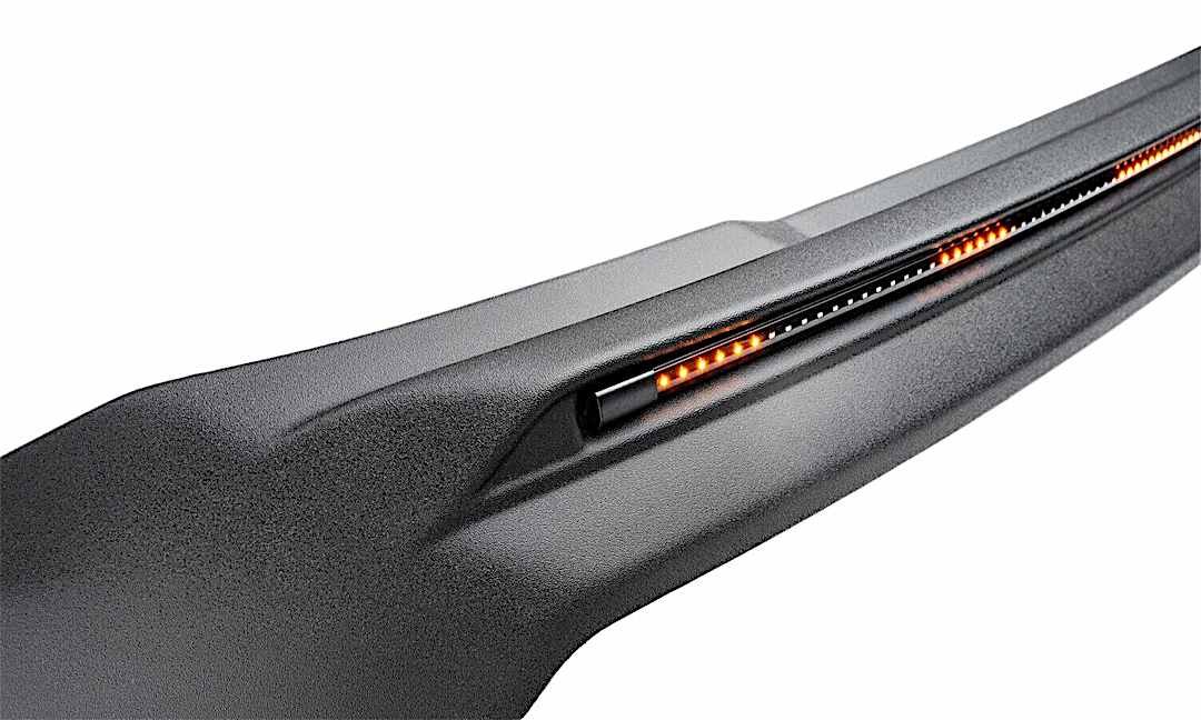 - Built-in amber LED marker lights accent the deflector