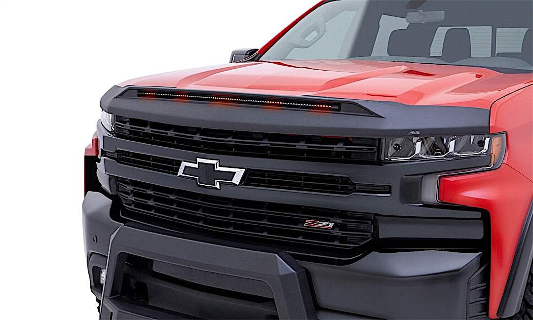 This Ventshade Aeroskin LightShield Pro deflector features fully integrated amber LED running lamps that provide optimum visibility in any condition. The Aeroskin deflects bugs, road debris, grime and rocks to keep your hood looking nice and to keep your vehicle’s resale value up.