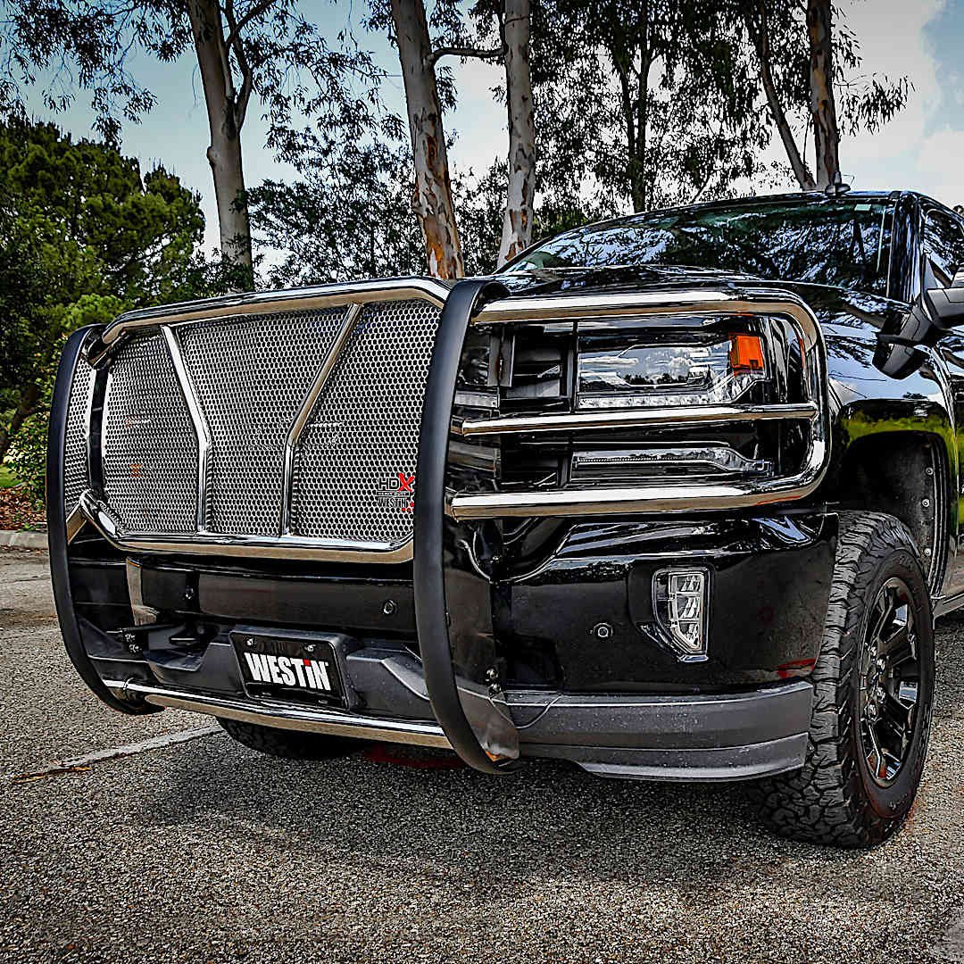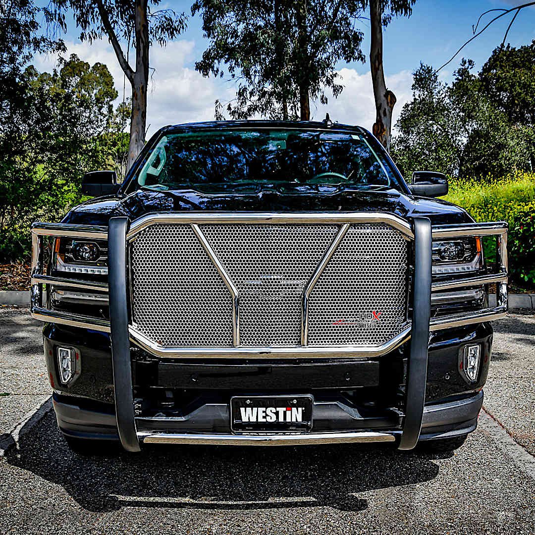 Westin’s heavy-duty HDX Series grille guards feature either stainless or black powder-coated tubing and are compatible with Westin auxiliary lights. Reinforced with a trick center punch plate that keeps large debris from flying in your windshield or damaging bodywork. Westin, known and recognized for quality and industry leadership, manufactures green automotive aftermarket accessories for SUVs and trucks.