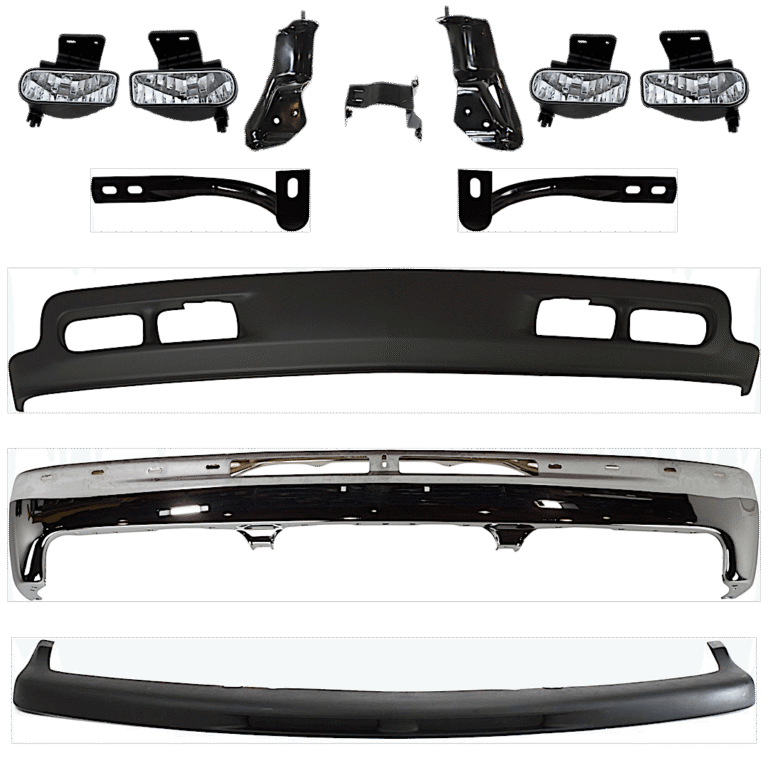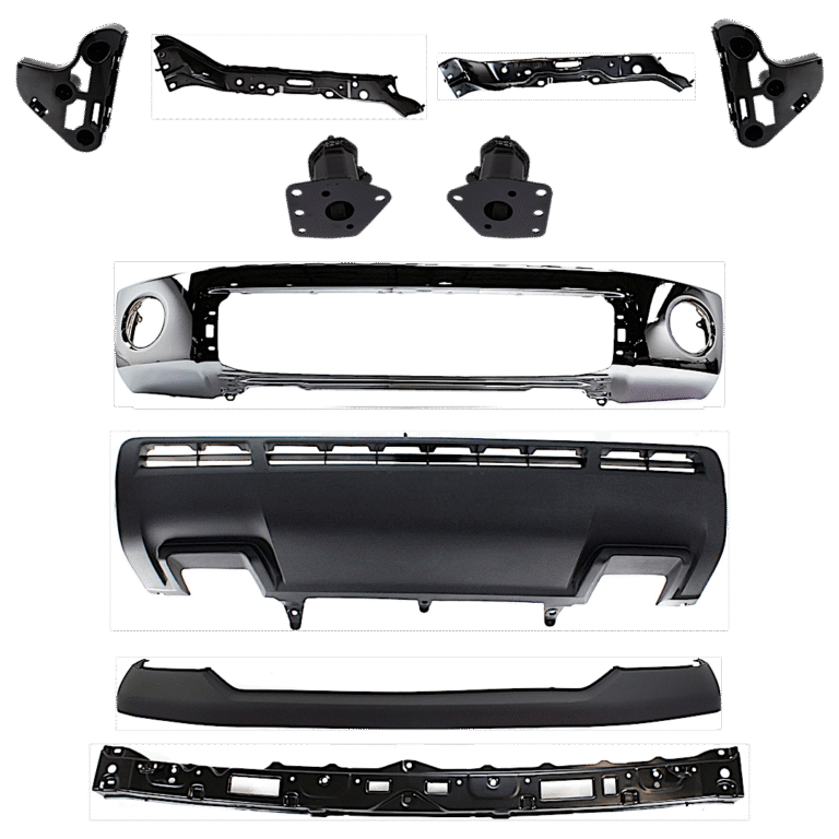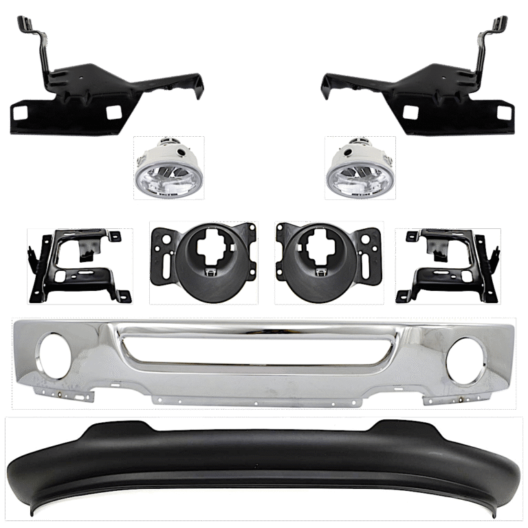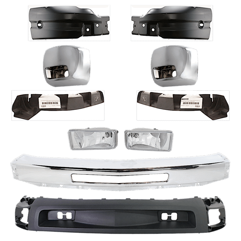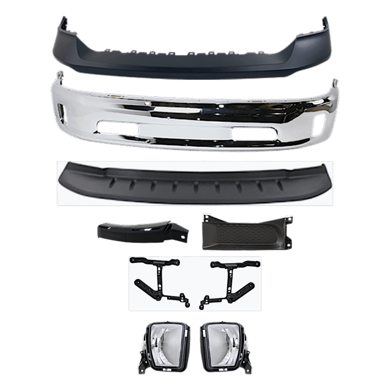 Replacement 10-Piece Kit, Front Bumper, Chrome, Includes (1) Bumper, (5) Bumper Bracket, (1) Bumper Trim, (2) Fog Light, and (1) Valance